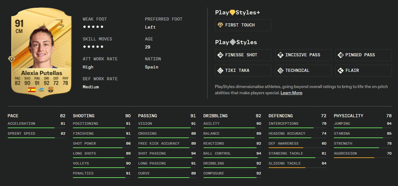 Na Superliga Feminina do FC 24, os três melhores Meio-Campistas Centrais (CM) atuam pelo FC Barcelona. Alexia Putellas e Aitana Bonmatí ocupam as duas primeiras posições, e ambas são também duas das jogadoras mais bem classificadas no FC 24. A terceira posição é ocupada por Patri Guijarro. Isso destaca a força e a qualidade do meio-campo do FC Barcelona na competição feminina.